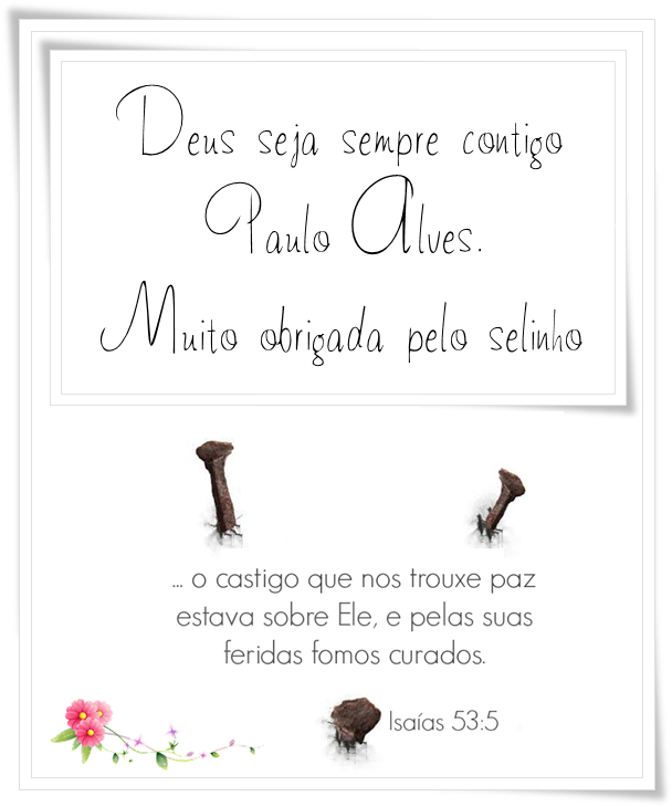 Jamais poderia imaginar que o Paulo Alves se lembraria do meu blog.Mas louvado seja o Senhor por tudo que acontece na nossa vida.